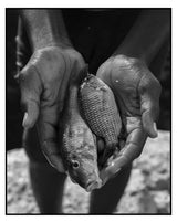 A boy showing me the fish they caught while hunting at Aberdeen village