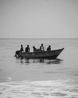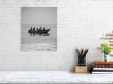 Fishermen on a boat waiting for their catch to feed on the nets they have cast.