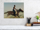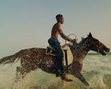 A portrait of a groom and his horse galloping at top speed with joy through the thrilling sea waves. Horse boys are mostly found on the beach in Accra, Ghana entertaining their horses by riding them from coast to coast when they have no patron to provide services to.
