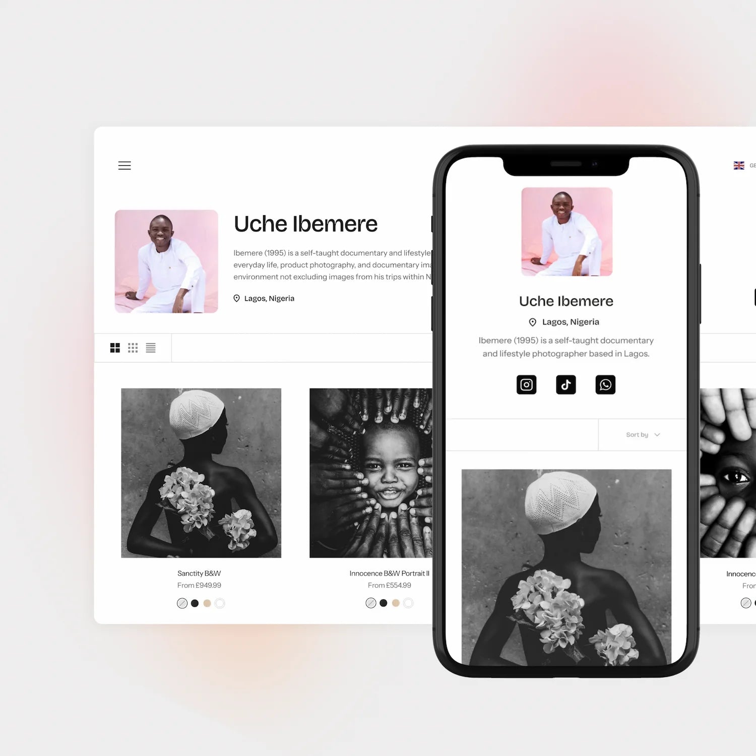 Our storefront tech ensures you have a professional and secure Store that is ready to accept international orders. Customise your Storefront by adding your own banner, profile, bio and social media links (including Whatsapp) designed to make it easy for your buyers to connect with you. Plus, we make your buyers journey personalised; with automatic translation and localised currency, plus AR features to view your art in their space.