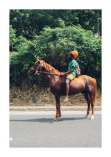 A Rasta enjoying an afternoon stroll on horseback in Portland, Jamaica. Portland is home to the famous blue lagoon and is nicknamed the “Green parish” because of its legendary vegetation and for being the greenest out of all of Jamaica’s fourteen parishes. (2015)